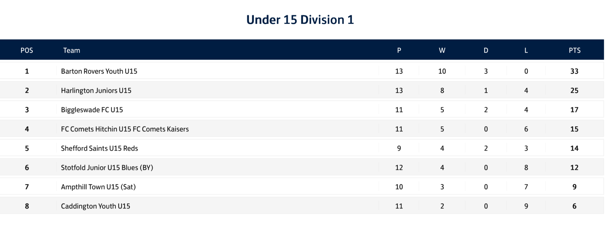 U15's League Table