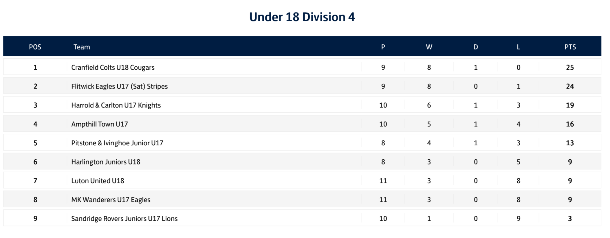 BEDS YOUTH SATURDAY LEAGUE DIV 1 u15's